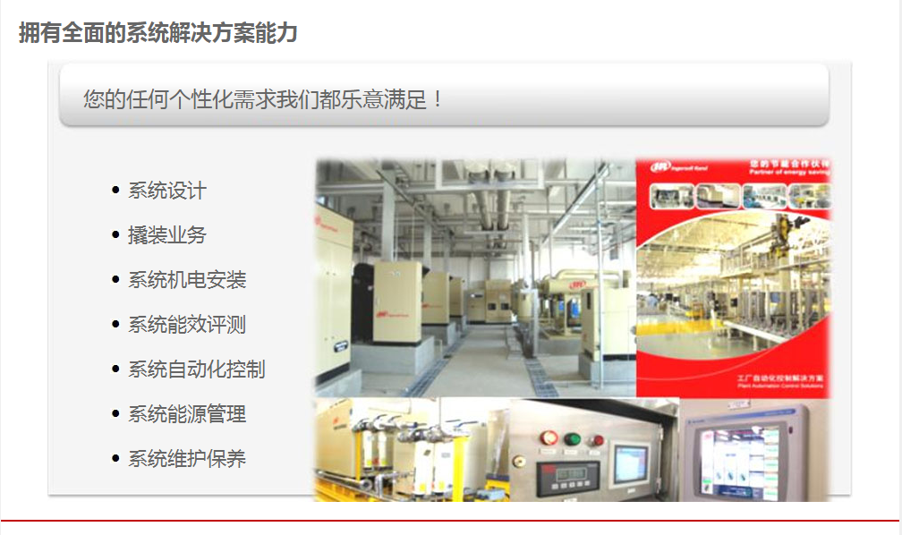 •        濟(jì)南銳博特機(jī)械設(shè)備有限公司是英格索蘭空氣壓縮機(jī)的授權(quán)代理商,代理銷售美國(guó)英格索蘭全系列的空壓機(jī)及后續(xù)處理設(shè)備。公司自成立以來(lái),經(jīng)過(guò)公司全體同仁不斷努力,開拓創(chuàng)新,以優(yōu)良的技術(shù)、完善的售后服務(wù),使得公司贏得了一個(gè)又一個(gè)的誠(chéng)心客戶。我公司擁有多名專業(yè)的銷售及售后服務(wù)人員,為客戶提供空壓系統(tǒng)的售前、售中及售后的全方位優(yōu)質(zhì)服務(wù)。另公司有多名具有英格索蘭壓縮機(jī)授權(quán)服務(wù)證書的服務(wù)工程師,能維修和保養(yǎng)國(guó)內(nèi)外各種品牌空壓機(jī),公司各種國(guó)內(nèi)外品牌空壓機(jī)配件庫(kù)存齊全。