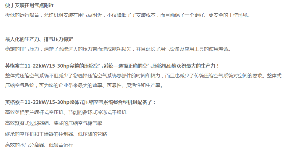 濟南銳博特機械設備有限公司是英格索蘭空氣壓縮機的授權代理商,代理銷售美國英格索蘭全系列的空壓機及后續(xù)處理設備。公司自成立以來,經過公司全體同仁不斷努力,開拓創(chuàng)新,以優(yōu)良的技術、完善的售后服務,使得公司贏得了一個又一個的誠心客戶。我公司擁有多名專業(yè)的銷售及售后服務人員,為客戶提供空壓系統(tǒng)的售前、售中及售后的全方位優(yōu)質服務。另公司有多名具有英格索蘭壓縮機授權服務證書的服務工程師,能維修和保養(yǎng)國內外各種品牌空壓機,公司各種國內外品牌空壓機配件庫存齊全。