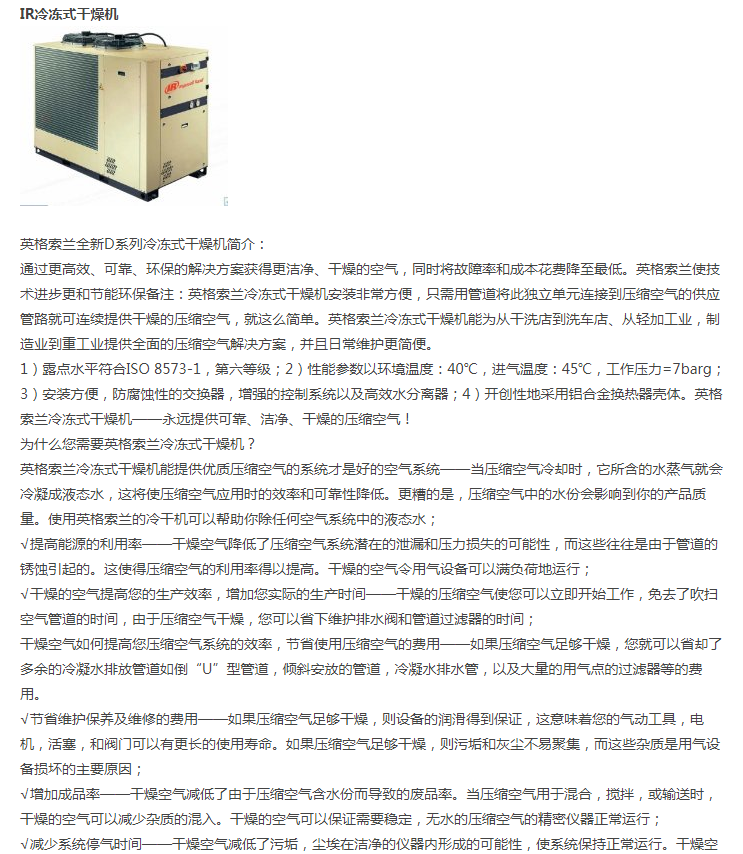 濟(jì)南銳博特機(jī)械設(shè)備有限公司是英格索蘭空氣壓縮機(jī)的授權(quán)代理商,代理銷售美國(guó)英格索蘭全系列的空壓機(jī)及后續(xù)處理設(shè)備。公司自成立以來(lái),經(jīng)過(guò)公司全體同仁不斷努力,開(kāi)拓創(chuàng)新,以優(yōu)良的技術(shù)、完善的售后服務(wù),使得公司贏得了一個(gè)又一個(gè)的誠(chéng)心客戶。我公司擁有多名專業(yè)的銷售及售后服務(wù)人員,為客戶提供空壓系統(tǒng)的售前、售中及售后的全方位優(yōu)質(zhì)服務(wù)。另公司有多名具有英格索蘭壓縮機(jī)授權(quán)服務(wù)證書的服務(wù)工程師,能維修和保養(yǎng)國(guó)內(nèi)外各種品牌空壓機(jī),公司各種國(guó)內(nèi)外品牌空壓機(jī)配件庫(kù)存齊全。