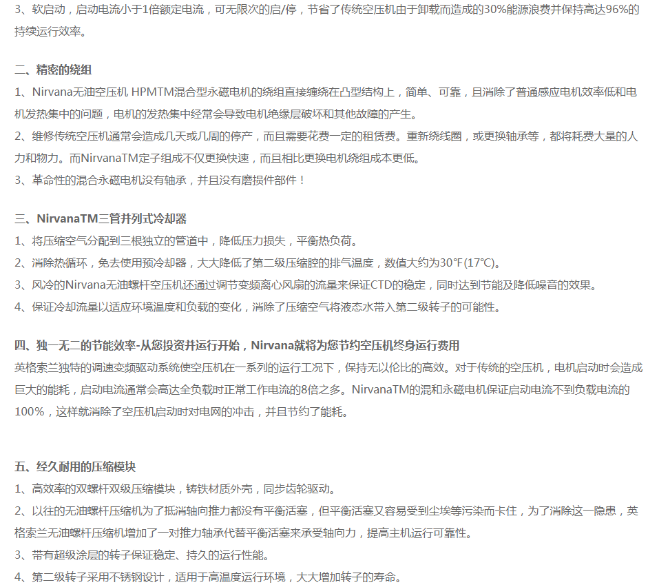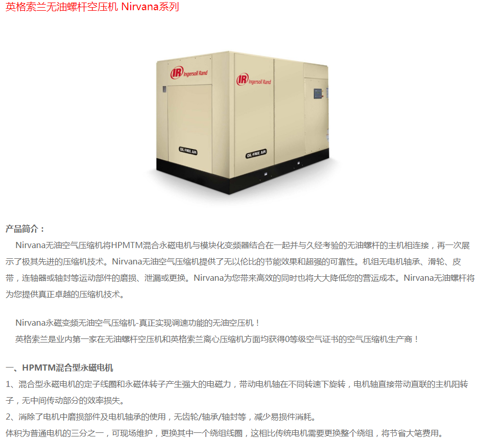 英格索蘭無油螺桿空壓機(jī)Nirvana系列
